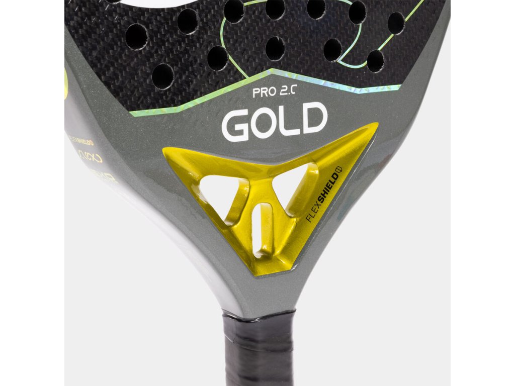 Raketa Gold Pro, vysoce výkonný model navržený ve tvaru diamantu, ideální pro hráče, kteří ve své hře upřednostňují sílu. Díky delší rukojeti umožňuje větší setrvačnost při akceleračních úderech, což poskytuje rozhodující výhodu v útočných situacích. Tato raketa, speciálně navržená pro zkušené hráče, je perfektní pro ty, kteří chtějí definovat body a dosáhnout maximálního výkonu v každém zápase. Je vybavena jádrem FLEXO BlackEVA s vysokou hustotou, které spolu s našimi vlákny FlexSHIELD 3K nabízí jedinečnou kombinaci síly, kontroly a odolnosti. Každý úder se stává zážitkem s maximální přesností a efektivitou. Navíc její 100% karbonový rám EXO COUNTER posiluje tuhost a prodlužuje životnost rakety, čímž zajišťuje vynikající odolnost i v těch nejnáročnějších zápasech. Pokročilý systém VIBRA-OUT Gold snižuje vibrace vznikající při úderu do míče o 40 %, což zaručuje větší pohodlí a chrání hráče před možnými zraněními v důsledku opakovaných nárazů. S Gold Pro se každý bod hraje s jistotou, že máte robustní a inovativní raketu navrženou k vítězství.
